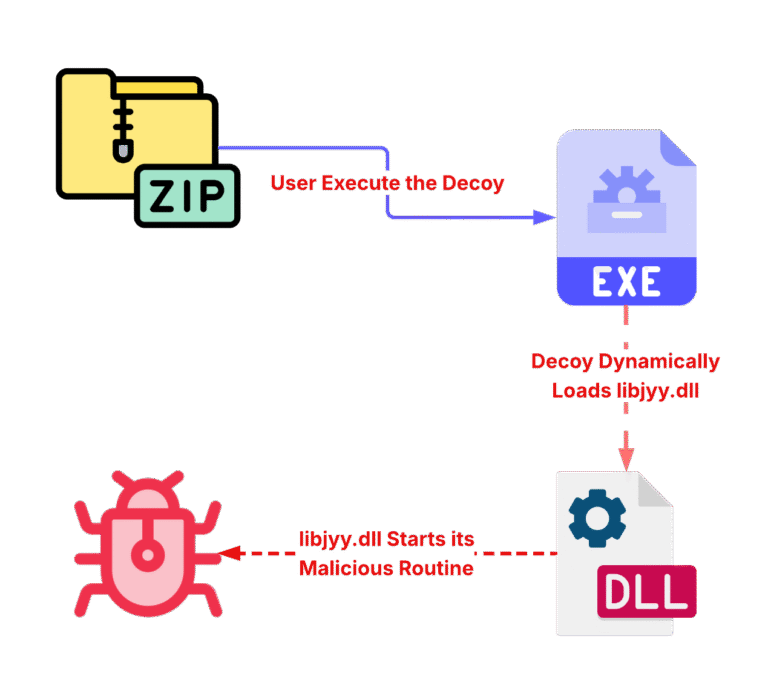 ซึ่งไฟล์ Exe ตัวดังกล่าวนั้นจะทำหน้าที่เป็นมัลแวร์นกต่อ (Loader) ชื่อว่า Claimloader ที่มีจุดประสงค์ในการใช้งานอย่างเดียวคือ ทำงานร่วมกับไฟล์ libjyy.dll (ซึ่งไฟล์นี้ได้แอบอ้างว่าเป็นไฟล์ซอฟต์แวร์จากเว็บไซต์ Wargaming.net Game Center ที่มีอยู่จริง เพื่อหลบเลี่ยงการถูกสงสัย) โดยตัว Loader จะทำการโหลดไฟล์ DLL ดังกล่าวด้วยการใช้งานฟังก์ชัน ProcessMain บน LoadLibraryW API ซึ่งมัลแวร์ Loader ตัวนี้เรียกได้ว่า สามารถทำงานได้หลายอย่างไม่ว่าจะเป็น การถอดรหัสไฟล์มัลแวร์ (Decryption), การทำการยืนยัน (Verifying) Arguement, การสร้างความคงทนในระบบ (Persistence), และสำคัญสุดคือการฝังมัลแวร์ (Payload) ลงบนระบบ โดยมัลแวร์ตัวนี้จะถูกเข้ารหัสในด้วยการเข้ารหัสแบบ XOR อย่างง่าย ๆ ด้วยการใช้กุญแจแบบไบต์เดียว(Single-Byte Key) คือ 0x19 เพื่อปิดบังค่าสตริงและการใช้งาน API Call หลบเลี่ยงการถูกตรวจจับด้วยเครื่องมือตรวจจับมัลแวร์ด้วยค่าคงที่ (Static Analysis)