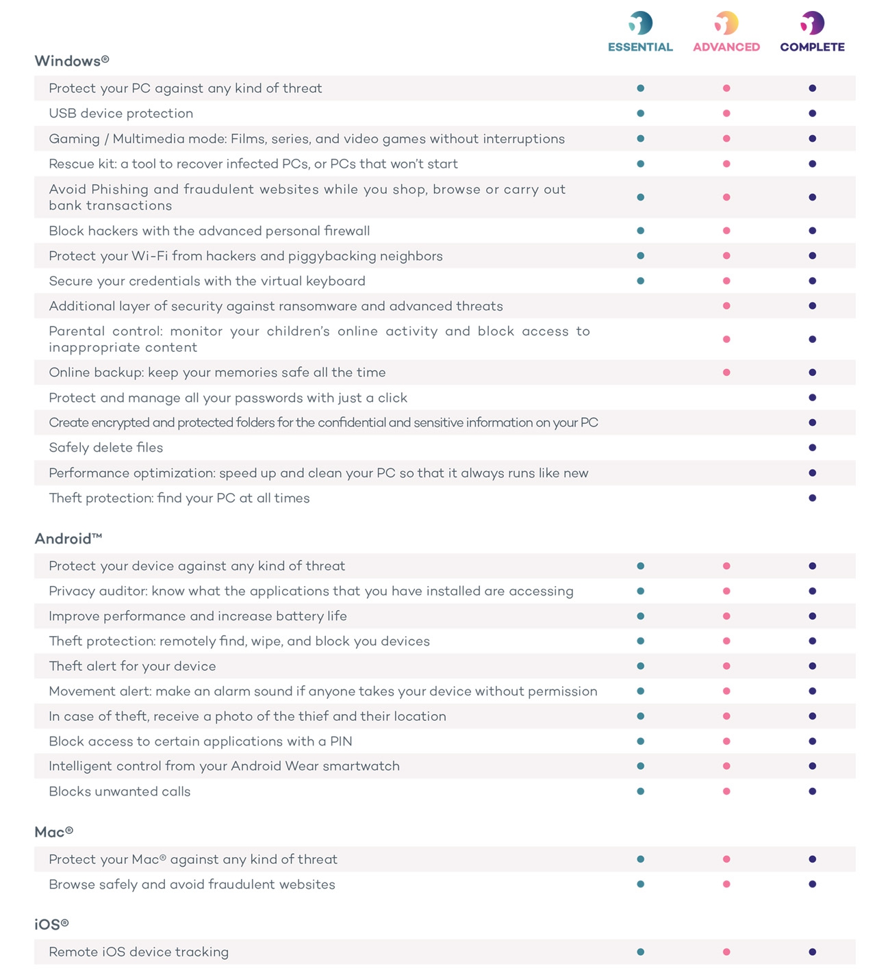 - โปรแกรมแอนตี้ไวรัสที่มาพร้อมกับ ไฟร์วอลล์ (Firewall) ที่ป้องกันการส่งผ่านข้อมูลของมัลแวร์ และมีความสามารถในการตรวจจับไวรัสบนระบบ Windows ได้ 100%