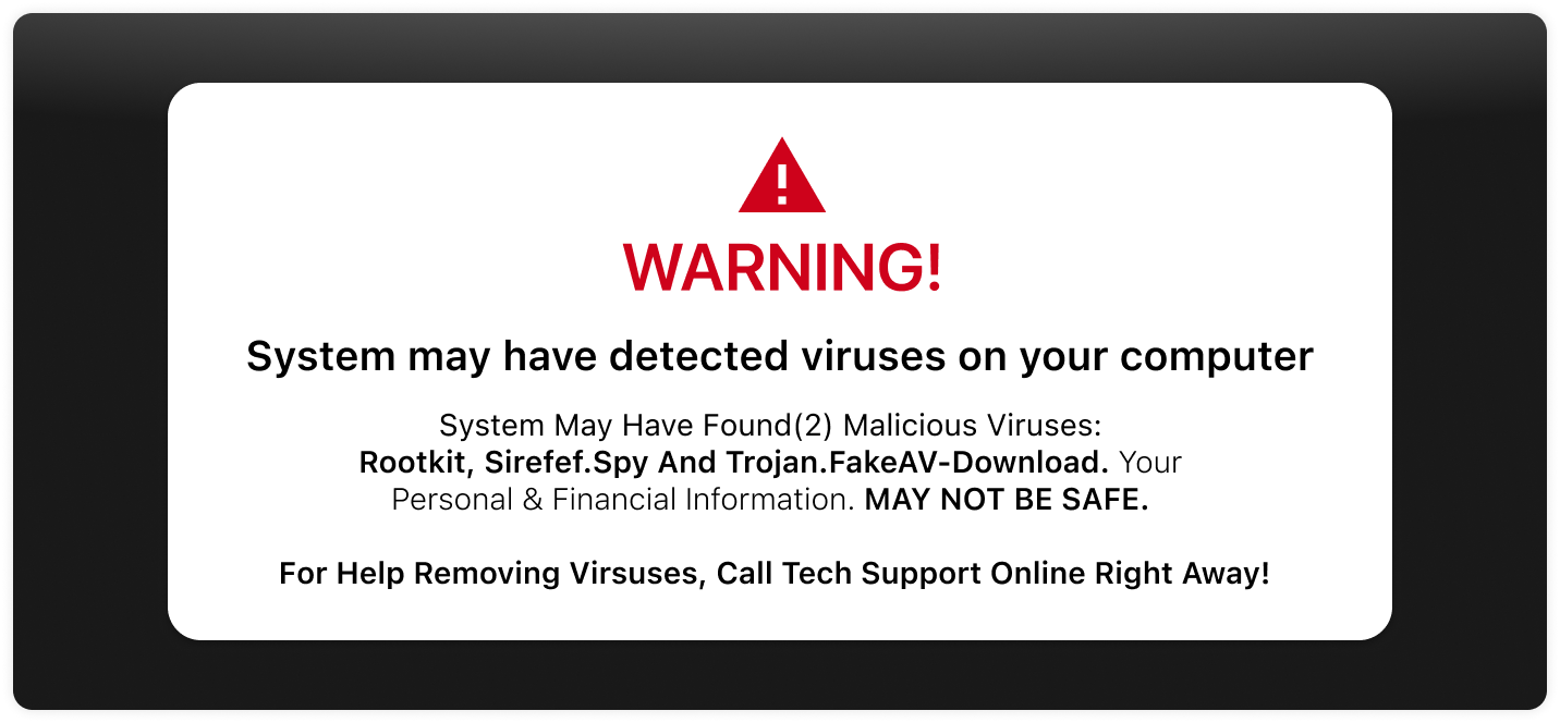 มาพูดถึงหน้าต่างป๊อปอัป (Pop-Up) ที่เรามักเห็นเวลาเข้าเว็บไซต์ที่มีการอัดโฆษณาเยอะ ๆ เต็มหน้าจอ มันมักจะมีสักอันที่มีข้อความบอกว่า "คอมพิวเตอร์ของคุณติดไวรัส" ไม่ก็ติด มัลแวร์ (Malware) พร้อมกับบอกให้คลิก หรือโทรศัพท์ไปยังหมายเลขที่ถูกระบุไว้เพื่อติดต่อไปยังฝ่ายสนับสนุนของ ระบบปฏิบัติการ Windows